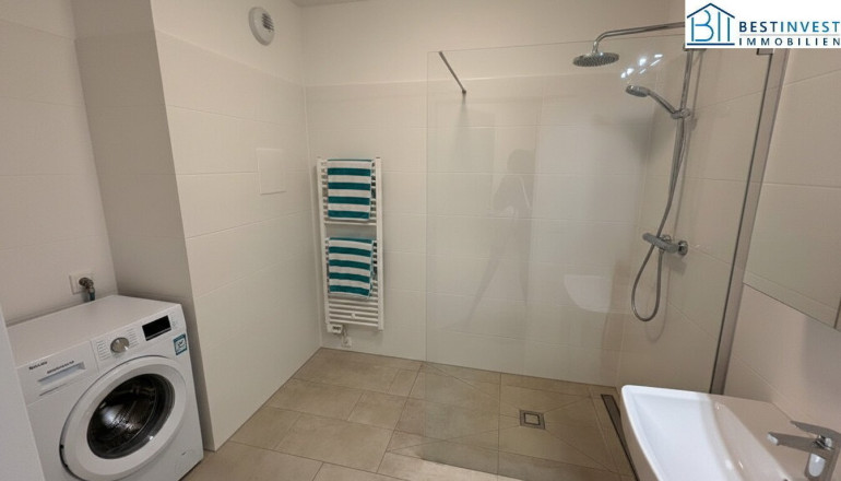 Die Wohnung überzeugt durch eine hochwertige Ausstattung. Der edle Eichen-Parkettboden strahlt Wärme und Eleganz aus, während die Fußbodenheizung für wohlige Temperaturen sorgt. Die moderne Einbauküche vom Tischler ist nicht nur funktional, sondern auch ein echter Blickfang. Hier finden Sie ausreichend Platz, um kulinarische Köstlichkeiten zu zaubern und gesellige Abende mit Freunden zu verbringen. Das Badezimmer ist mit einer großen Dusche und einer Glaswand ausgestattet, die nach einem langen Tag zur Erholung beitragen. Ein Kellerabteil, Fahrradabstellflächen und Radweg werden geboten. Der Innenhof sowie die Außenanlagen werden als Park und Spielflächen angelegt. Tiefgaragen sind optional anmietbar.