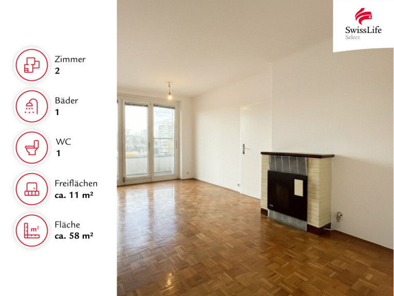 Die Wohnung befindet sich im 3. Liftstock und verfügt über eine Wohnfläche von ca. 58,48 m² sowie eine großzügige Loggia mit ca. 11,86 m², die zusätzlichen Freiraum bietet.