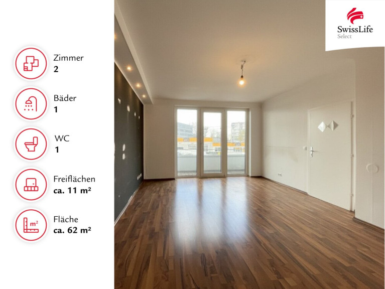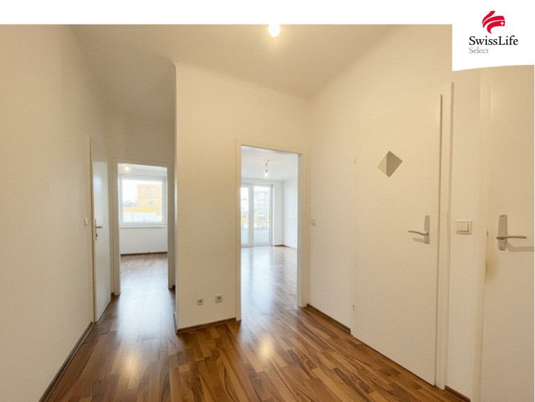 Die Wohnung befindet sich im 1. Liftstock und verfügt über eine Wohnfläche von ca. 62,94 m² sowie eine großzügige Loggia mit ca. 11,86 m², die zusätzlichen Freiraum bietet.