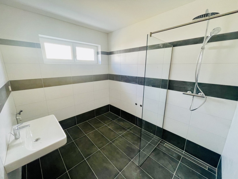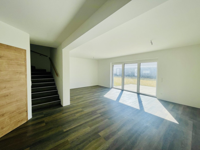 Im Erdgeschoss befindet sich ein offen gestalteter Wohn-Ess-Küchenbereich mit direktem Zugang zur Terrasse und in den Eigengarten. Dieser helle und offene Bereich bildet das Zentrum des Hauses und bietet ausreichend Platz für Familie und Gäste.