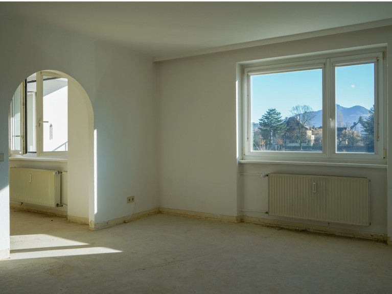 In ruhiger, zentraler Lage am Makartkai in der Salzburger Katastralgemeinde Itzling befindet sich diese 3-Zimmer-Wohnung mit einer Ost-Loggia. Die Wohnung im 2. Obergeschoss ist über einen Aufzug erreichbar und liegt in einem gepflegten Mehrparteienhaus. Auf rund 66 m² Wohnfläche bietet die Wohnung eine ideale Basis für Eigennutzer oder Anleger, die eine sanierungsbedürftige Immobilie suchen. Beim Betreten der Wohnung erschließt ein Gang die drei Wohnräume. Die Räume sind aktuell durch Türen und Durchgänge miteinander verbunden und haben jeweils ein großes Doppelflügelfenster Richtung Osten. Dadurch ist jeder Wohnraum hell mit Tageslicht ausgeleuchtet. Die Loggia ist aktuell über die Küche erreichbar und überzeugt nicht nur durch Schutz vor Witterung sondern auch durch die wunderbare Aussicht auf die Salzach und den Gaisberg. Vom Gang aus erreichbar, befindet sich ein Badezimmer mit Badewanne und getrennt davon eine Toilette. Beide Räume haben Fenster zu einem innenliegenden Atrium/Lüftungsschacht. Eine Nische mit Einbauschrank dient im Gang als ordentliche Garderobe.