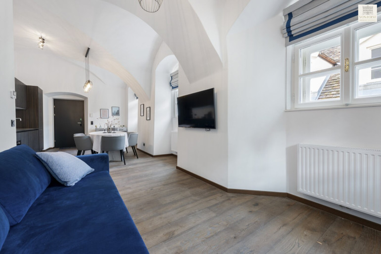 Das architektonische Erbe des „Freihofs“ aus dem Jahr 1455 wurde in all seiner Eleganz bewahrt und auf höchstem Niveau revitalisiert. Die Wohnungen vereinen den historischen Charme mit modernster Ausstattung und bieten den perfekten Rahmen für ein luxuriöses und komfortables Wohnerlebnis. Hohe Kreuzgewölbe-Decken, lichtdurchflutete Räumlichkeiten und edle Materialien prägen dieses stilvolle Wohnprojekt und verleihen eine einzigartige Atmosphäre. Feinste Parkettböden, exklusiver Marmor und moderne SieMatic Luxus-Küchen unterstreichen das gehobene Ambiente.