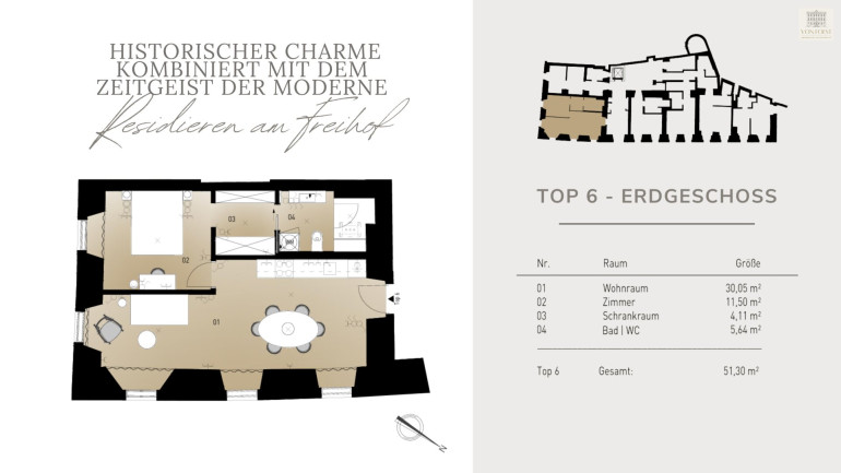 Erleben Sie den einzigartigen Charme einer stilvollen Verschmelzung von Tradition und Moderne – im „Freihof“ erwartet Sie Ihr neues Zuhause auf höchstem Niveau.