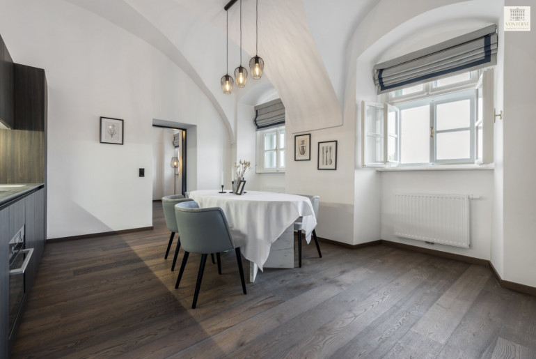 Das architektonische Erbe des „Freihofs“ aus dem Jahr 1455 wurde in all seiner Eleganz bewahrt und auf höchstem Niveau revitalisiert. Die Wohnungen vereinen den historischen Charme mit modernster Ausstattung und bieten den perfekten Rahmen für ein luxuriöses und komfortables Wohnerlebnis. Hohe Kreuzgewölbe-Decken, lichtdurchflutete Räumlichkeiten und edle Materialien prägen dieses stilvolle Wohnprojekt und verleihen eine einzigartige Atmosphäre. Feinste Parkettböden, exklusiver Marmor und moderne SieMatic Luxus-Küchen unterstreichen das gehobene Ambiente.