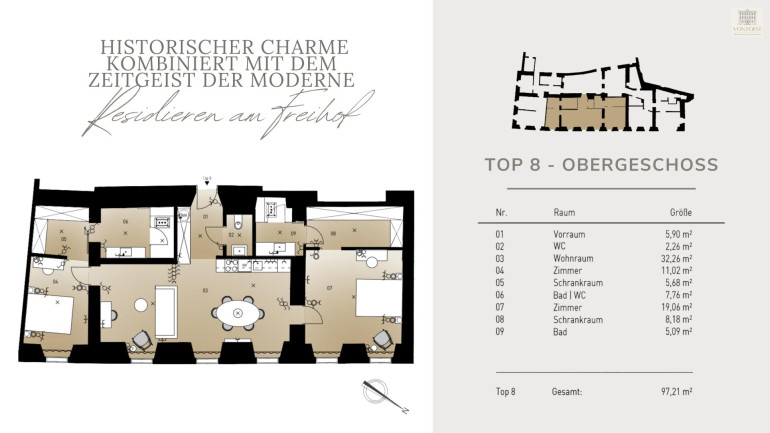 Erleben Sie den einzigartigen Charme einer stilvollen Verschmelzung von Tradition und Moderne – im „Freihof“ erwartet Sie Ihr neues Zuhause auf höchstem Niveau.