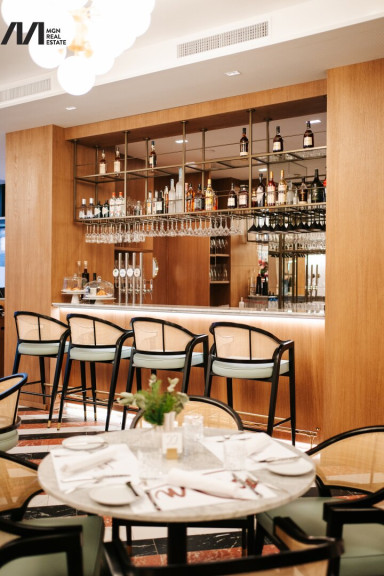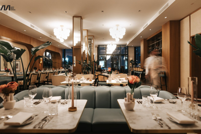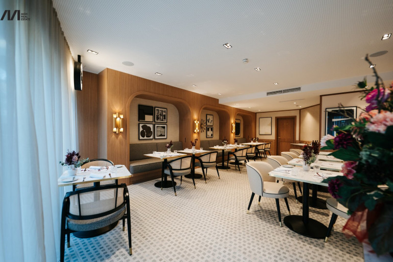 Großzügige Gasträume, eine repräsentative Bar sowie ein attraktiver Außenbereich ermöglichen eine flexible Nutzung: vom intimen Abendservice bis hin zu exklusiven Veranstaltungen. Die Küche ist professionell geplant und bietet optimale Arbeitsabläufe für einen anspruchsvollen Betrieb. Ergänzt wird das Angebot durch Nebenflächen wie Lager- und Kühlmöglichkeiten, Personalbereiche sowie Sanitäranlagen.