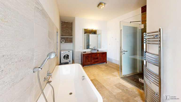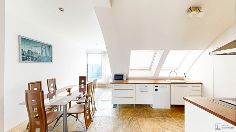 Dieses charmante zweigeschossige Apartment bietet auf zwei Ebenen etwa 120 m² Wohnfläche und eine sonnige Terrasse von 22 m² – perfekt zum Entspannen oder für Gäste. Dank des flexiblen Grundrisses verfügt die Wohnung derzeit über drei Zimmer, kann jedoch leicht auf vier Zimmer erweitert werden und bietet so zahlreiche Möglichkeiten, Ihren Lebensstil individuell zu gestalten.