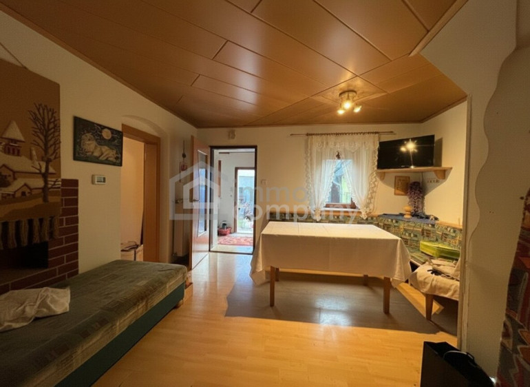 Das zweite Wohnhaus wurde zuletzt etwa 1989 teilweise saniert und bietet auf einer Ebene einen Vorraum, ein Wohn-Esszimmer, ein Schlafzimmer, ein Kinderzimmer, eine Küche sowie eine große geflieste Speis mit direktem Ausgang in den Garten. Zusätzlich stehen ein Badezimmer mit begehbarer Dusche, Waschmaschinenanschluss und Waschbecken sowie ein separates WC zur Verfügung. Die Beheizung erfolgt über eine Pellets-Zentralheizung. Am Dachboden befindet sich ein weiteres ausgebautes Zimmer sowie ein Dachbodenraum mit Warmwasserspeicher.
