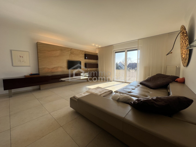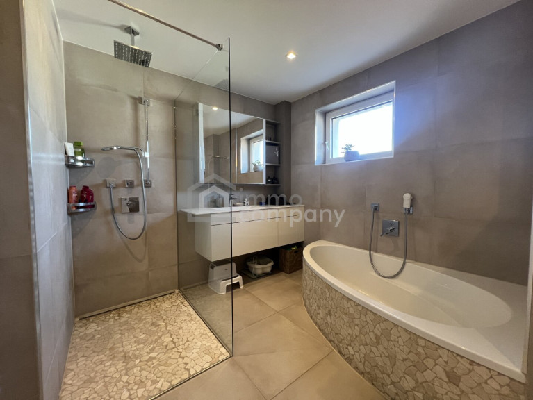 Parkett, Fliesen, Öl, Zentralheizung, Einbauküche, Wohnküche / offene Küche, Südbalkon, Bad mit Fenster, Badewanne, Dusche, Garage, Wasch/Trockenraum, Swimmingpool