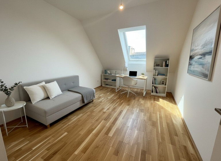 Alle Wohnräume sind mit hochwertigen Holzböden ausgestattet, während Badezimmer, Vorraum und WC modern verfliest sind. Für angenehmen Wohnkomfort sorgt eine Fußbodenheizung, die über Fernwärme betrieben wird. Die Abrechnung erfolgt direkt mit dem Versorgungsunternehmen und richtet sich nach dem individuellen Verbrauch.