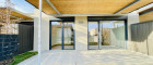 Große Schiebeelemente mit elektrischen Raffstores für Lichtkomfort und Privatsphäre