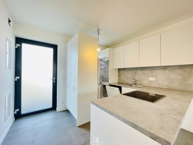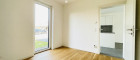 Der helle Wohn- und Essbereich mit integrierter Küche sowie ein Schlafzimmer sind nach Süden ausgerichtet - das zweite Schlafzimmer nach Norden - und bieten somit Sonne und Licht bis in die Abendstunden. Über die zentrale Wohnküche gelangen Sie in die zwei Schlafzimmer, in das stilvolle Badezimmer – ausgestattet mit Walk-in-Dusche, Waschbecken mit Spiegelverbau und Anschluss für die Waschmaschine - sowie in das separate WC.