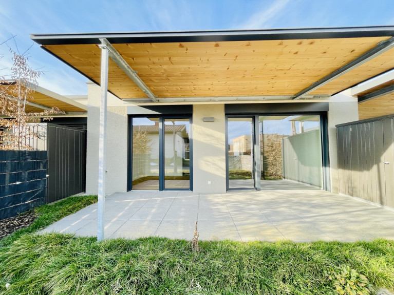 Diese im Jahr 2023 fertiggestellte Bungalow-Wohnung vereint modernes Design, hochwertige Ausstattung und ein durchdachtes Wohnkonzept. Die hier angebotene Wohneinheit im Erdgeschoss begeistert mit einem großen Garten und einer sonnigen, barrierefreien Terrasse – der perfekte Ort, um den Feierabend zu genießen und den Alltag hinter sich zu lassen.