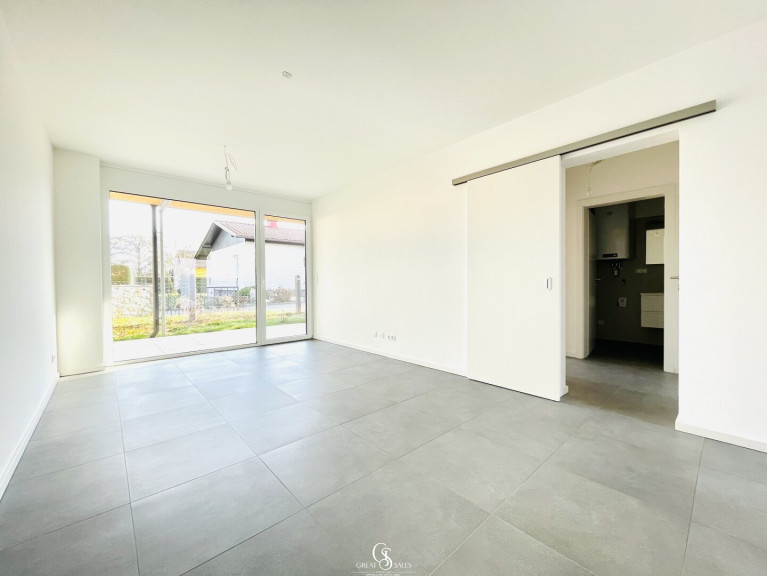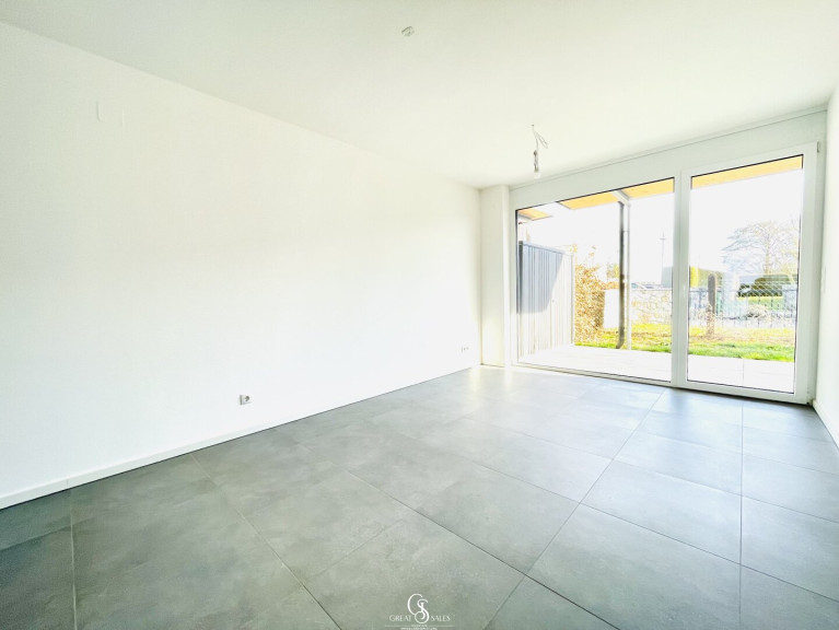 - Großzügiger Wohnbereich mit offener Küche und Zugang zur Terrasse mit Garten