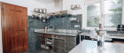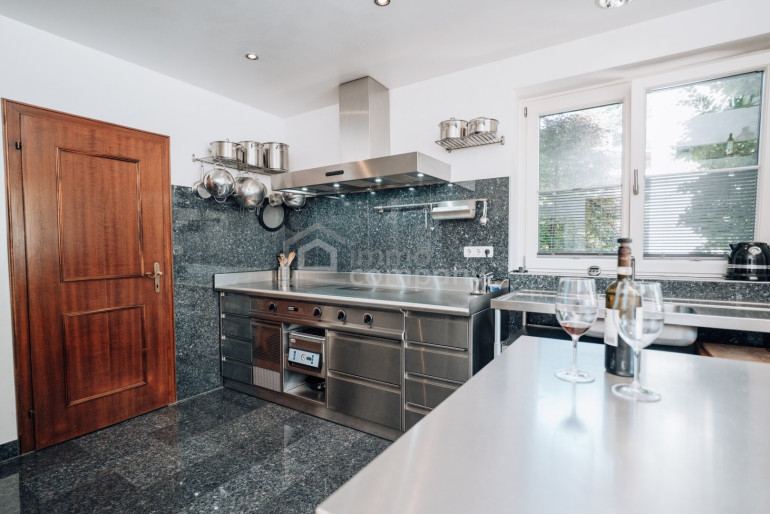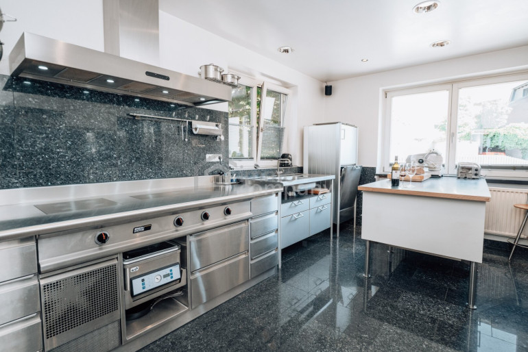 - Küchen: Profi Herd von Menue System; Großraumbackofen von Gaggenau; Brotbackofen von NFG; Arbeitstisch mit Edelstahlplatte von Bulthaup; Gutmann-Dunstabzugshaube mit außenliegendem Motor