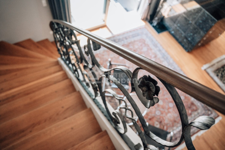 - Materialien: alle Räume und Treppen ausgelegt mit einem Vollholzfußboden aus astreiner böhmischer Eiche im Schiffsbodenverbund; Küche, Bäder und Terrasse ausgelegt mit Natursteinen ( Marmor und Granit ), z.T. in Maxi-Formaten; alle Fenster der Hersteller Josko und Rieder in Holz oder Holz/Alu ausgeführt