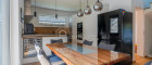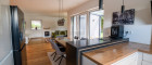 Großer, heller Wohnbereich mit offener, moderner Küche und direktem Zugang zur Terrasse