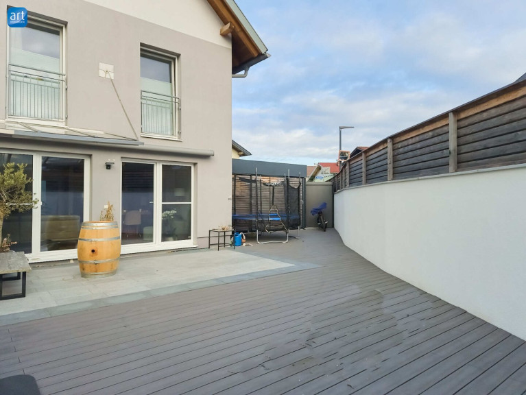 Das 263 m² große Grundstück verfügt über einen pflegeleichten Garten sowie einen gemauerten Zaun für Privatsphäre. Das Haus ist voll unterkellert und bietet zusätzlichen Stauraum.