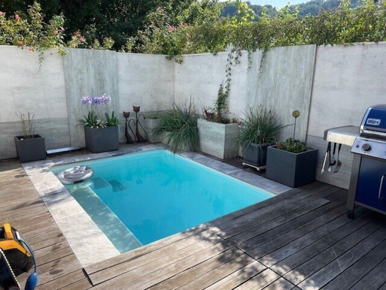 Der 2018 komplett erneuerte Poolbereich mit Freisitz und Scheune schafft eine Atmosphäre wie im privaten Sommerrefugium. Ein Ort für warme Tage, lange Gespräche und das Gefühl, einfach zuhause angekommen zu sein.