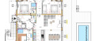 Die Schlafräume sind klar vom Wohnbereich getrennt angeordnet und bieten Ruhe sowie Rückzugsmöglichkeiten. Das Hauptschlafzimmer ist großzügig geschnitten, die weiteren Zimmer lassen sich flexibel als Kinderzimmer, Gästezimmer oder Homeoffice nutzen. Die klare Raumgeometrie ermöglicht eine einfache Möblierung und unterstreicht den ruhigen, aufgeräumten Charakter der Wohnung.