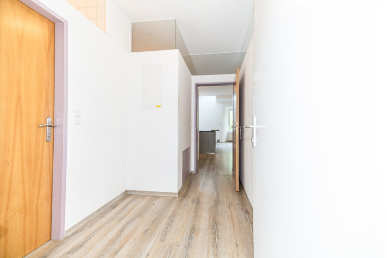 Nach dem Betreten empfängt Sie ein Vorraum mit Platz für Ihre Garderobe. Von hier aus gelangen Sie in die separate Toilette sowie das gepflegte Badezimmer mit Badewanne, Waschbecken und Waschmaschinenanschluss.