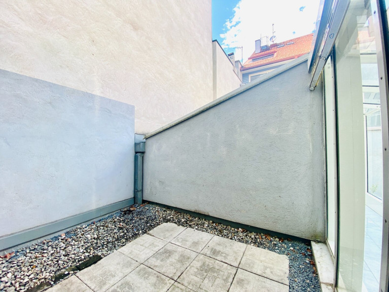 Vom Schlafzimmer aus begehbar – die großzügige, ruhige Terrasse lädt zum Verweilen, Frühstücken oder Entspannen im Freien ein.