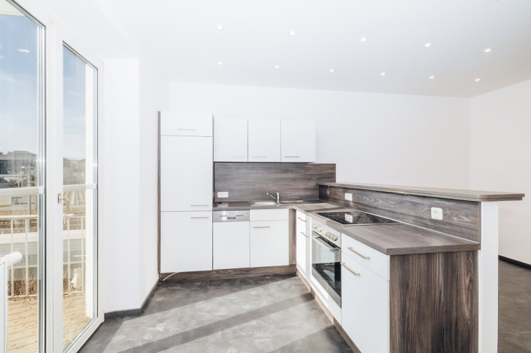 Vom Küchenbereich direkt zugänglich - perfekt für entspannte Momente im Freien, mitten in der Stadt und doch ruhig gelegen. - Moderne Küche mit viel Platz
