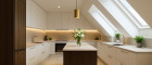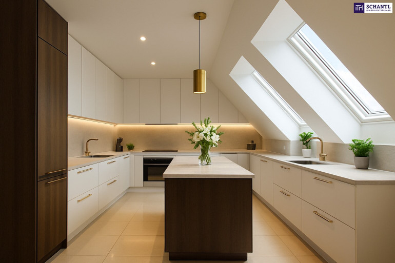 Die Wohnung ist mit einer offenen Wohnküche ausgestattet, die nicht nur funktional ist, sondern auch einladend und kommunikativ wirkt. Hier können Sie gemeinsam mit Freunden und Familie kochen und entspannen. Zwei stilvolle Badezimmer und zwei getrennte WCs sorgen für zusätzlichen Komfort und Privatsphäre.