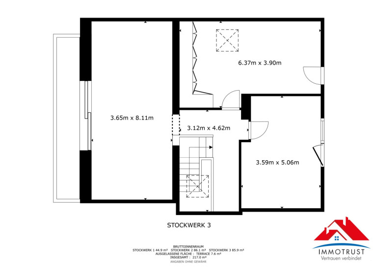 2. Obergeschoss (Stockwerk 3) – ca. 85,9m²