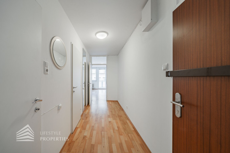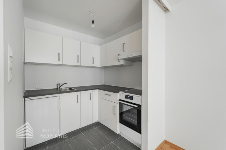 Die Wohnung befindet sich im 2. Liftstock eines 1974 erbauten Gebäudes und erstreckt sich über eine Wohnfläche von ca. 58 m². Sie teilt sich auf in einen Vorraum, eine Wohnküche, ein Schlafzimmer, ein Badezimmer sowie ein separates WC. Die Haupträume der Wohnung sind mit einem schönen Laminatboden ausgekleidet, in den Nassräumen sowie in der Küche wurden moderne Fliesen verlegt. Das Highlight der Immobile stellt zweifelsohne die ca. 7 m² große Loggia dar, welche zum Entspannen an der frischen Luft einlädt.