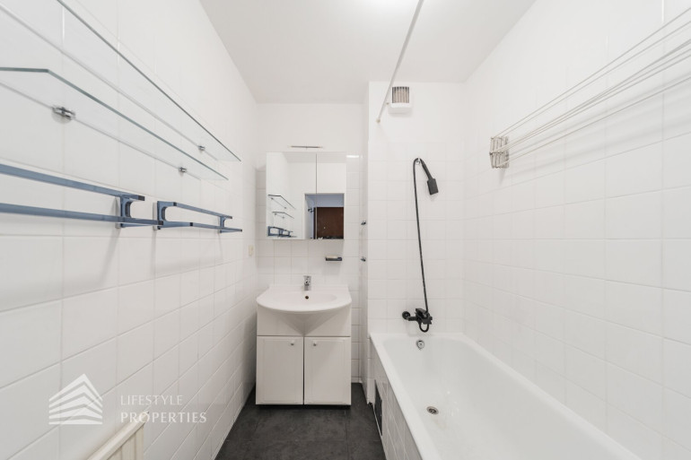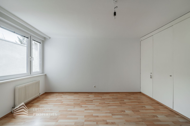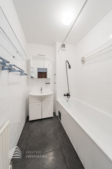 Sie betreten die Wohnung und befinden sich im Vorraum, von welchem aus Sie zentral alle Räumlichkeiten erreichen. Rechterhand befindet sich das Wohnzimmer mit Kochnische und Loggia. Die Einbauküche ist mit modernen Geräten ausgestattet und verfügt über genügend Stauraum für diverse Küchenutensilien. Hier haben Sie ausreichend Platz für eine große Couchlandschaft sowie einen schönen Esstisch. Zurück im Vorraum gelangen Sie linkerhand in das Schlafzimmer, welches zum Innenhof ausgerichtet und daher angenehm ruhig ist. Dieses bietet ausreichend Platz für ein großes Doppelbett. Das Badezimmer verfügt über eine Badewanne und ein Waschbecken. Die separate Toilette befindet sich nebenan. Beheizt wird die Immobilie mittels Gaszentralheizung.