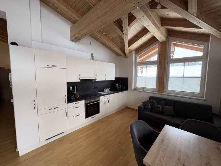 Diese gepflegte Dachgeschosswohnung vereint alpinen Charme mit moderner Wohnqualität. Der sichtbare Dachstuhl, großzügige Fensterflächen und die durchdachte Raumaufteilung schaffen ein besonderes Wohngefühl auf kompakter Fläche. Die Kombination aus ländlicher Architektur, zentraler Lage und hochwertiger Ausführung macht dieses Objekt sowohl für Eigennutzer als auch als wertstabile Anlage interessant.
