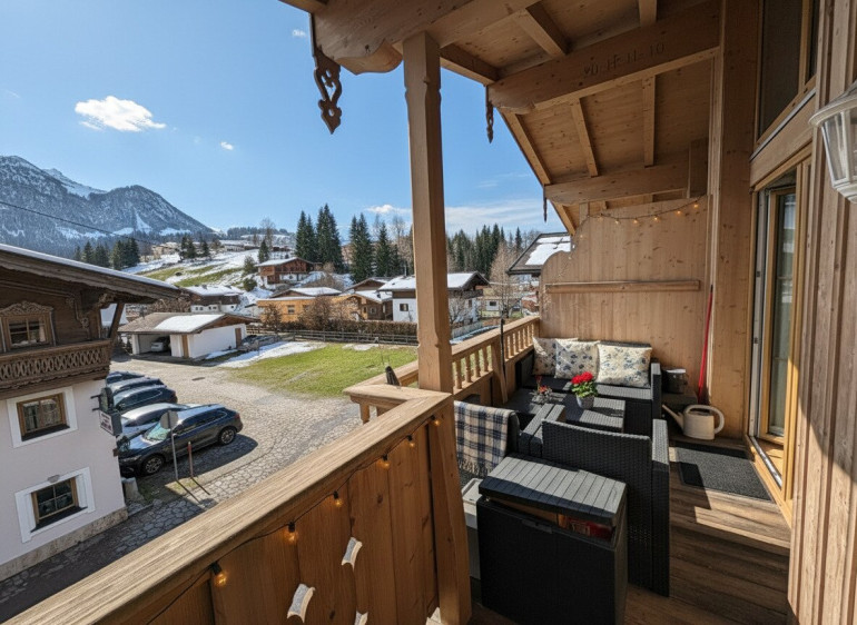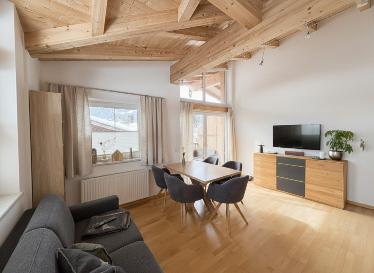 Alpine Dachgeschosswohnung mit Sichtdachstuhl & Balkon – mitten in Fieberbrunn