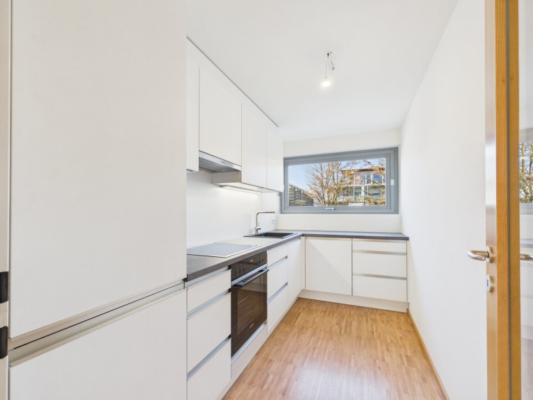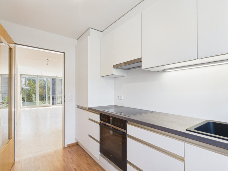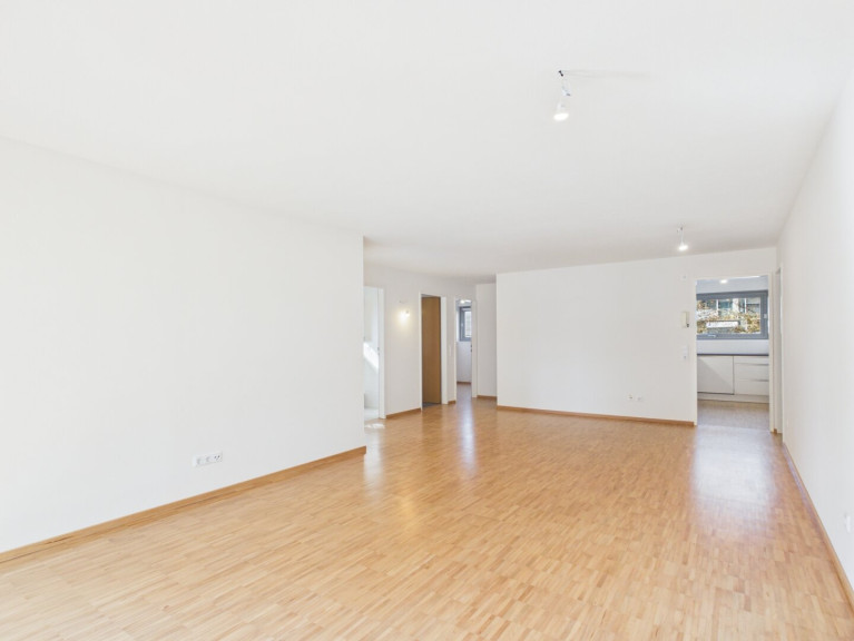 Das Herzstück der Wohnung bildet der großzügige Wohn- und Essbereich mit direktem Zugang zur schönen südseitigen Terrasse. Zusätzlich steht eine verglaste Veranda zur Verfügung, die das ganze Jahr über als geschützter Zusatzraum genutzt werden kann.