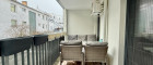 Die Loggia mit Stadtblick lädt zum Entspannen ein – ob bei einem Glas Wein am Abend oder beim Genießen der Sonne am Wochenende.