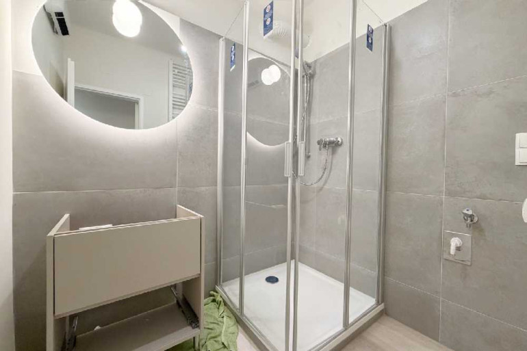 Beim Betreten der Wohnung gelangt man in einen zentralen Vorraum, von dem aus alle Räume getrennt begehbar sind. Die neu eingebaute Küche ist mit sämtlichen notwendigen Geräten ausgestattet und bietet ausreichend Platz für die Gestaltung eines gemütlichen Essbereichs. Darüber hinaus verfügt die Wohnung über ein großzügiges, rund 19 m² großes Wohnzimmer, das ebenso ideal als zusätzliches WG-Zimmer genutzt werden kann, sowie über ein separates Schlafzimmer. Badezimmer und WC sind voneinander getrennt angeordnet. Das Badezimmer ist mit einem Waschtisch, einem Handtuchheizkörper sowie Anschlüssen für Waschmaschine und Trockner ausgestattet.