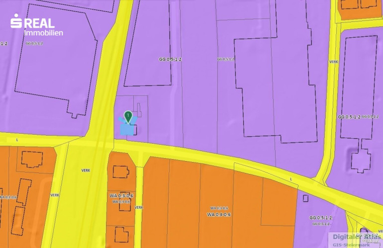 Die Liegenschaft befindet sich in einer als GG 0,5–1,2 gewidmeten Gewerbezone. Sowohl eine Bestandsanierung als auch eine strategische Neuentwicklung sind im Rahmen der widmungsrechtlichen Vorgaben grundsätzlich denkbar.