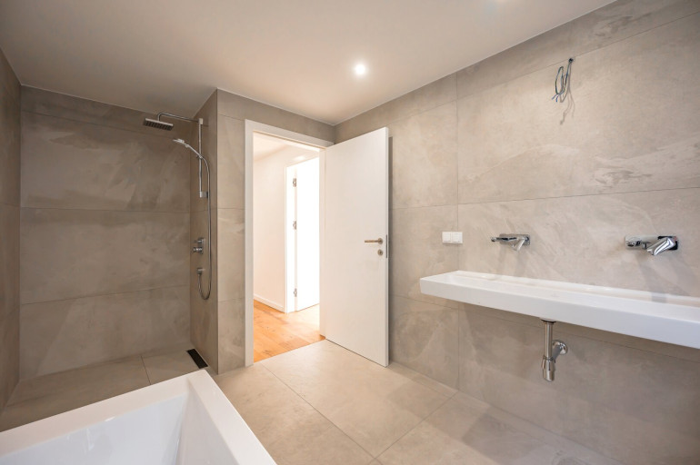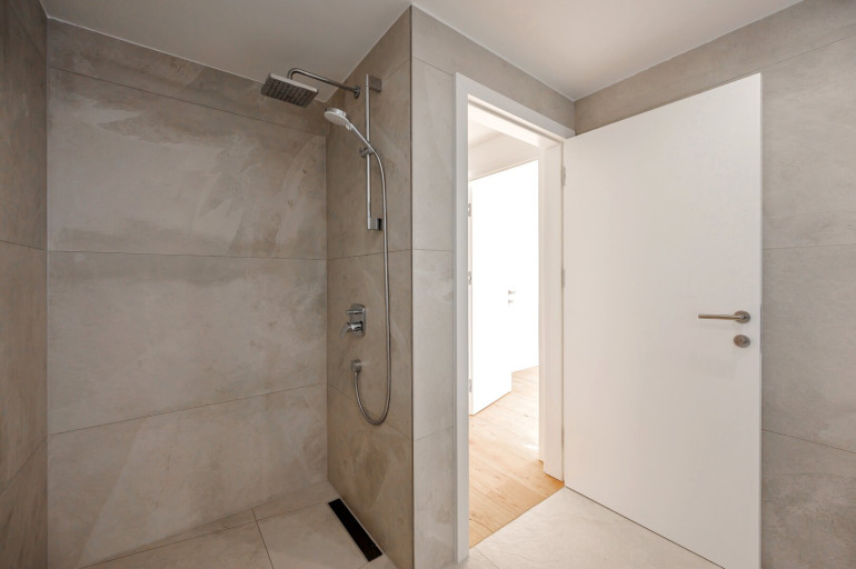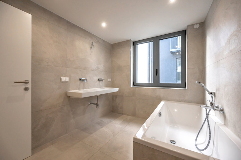 Estrichboden, Fußbodenheizung, Wohnküche / offene Küche, Südbalkon, Bad mit Fenster, Badewanne