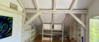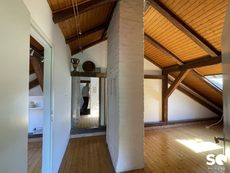 - Offenes Wohnkonzept mit sichtbaren Holzträgern
