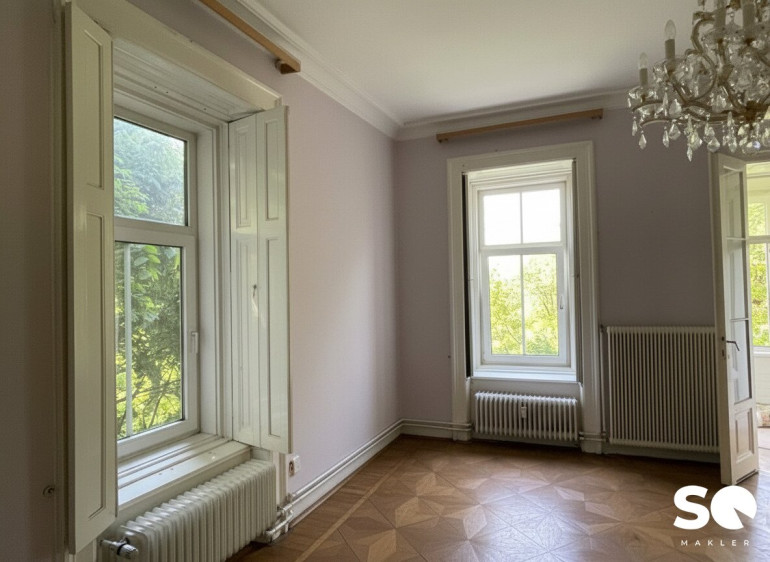 Diese eindrucksvolle Villa aus der Jahrhundertwende erstreckt sich über drei Etagen und bietet auf 11 großzügig geschnittenen Zimmern reichlich Raum für individuelle Wohnträume. Das beeindruckende Grundstück mit 3.522 m² Fläche befindet sich in einer der gefragtesten Lagen der Stadt, ist als Grünland gewidmet und eröffnet einen einzigartigen Panorama-Ausblick ins Grüne, über die Stadtgrenze hinaus bis in die Ferne.