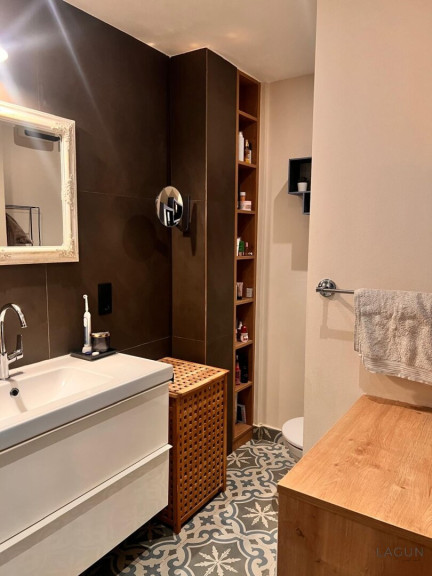 Die Wohnung verfügt über zwei Badezimmer, eines mit Badewanne und eines mit Dusche, sowie zwei WCs.