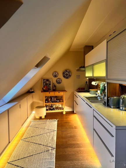 Diese außergewöhnliche Dachgeschosswohnung vereint modernes Wohnen mit dem Charakter eines klassischen Wiener Zinshauses.