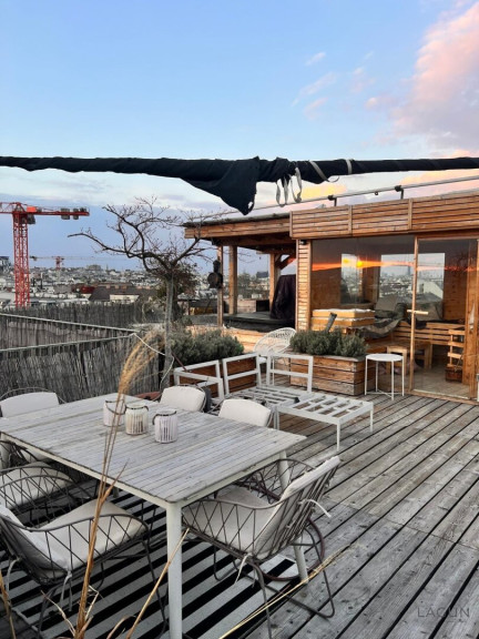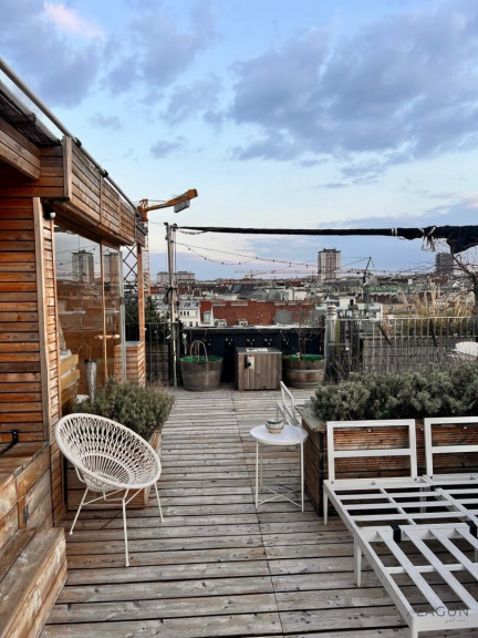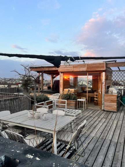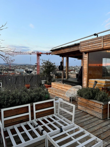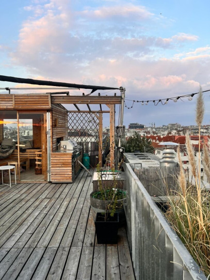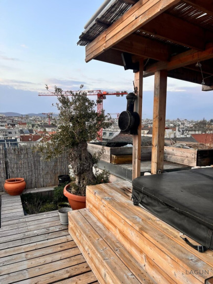 Das absolute Herzstück der Immobilie ist jedoch die über 60 m² große Dachterrasse mit beeindruckendem Rundumblick über Wien. Die Terrasse ist hochwertig ausgestattet und bietet mehrere Aufenthaltsbereiche.