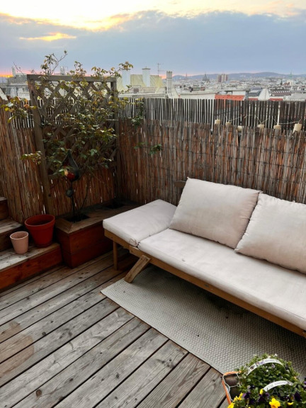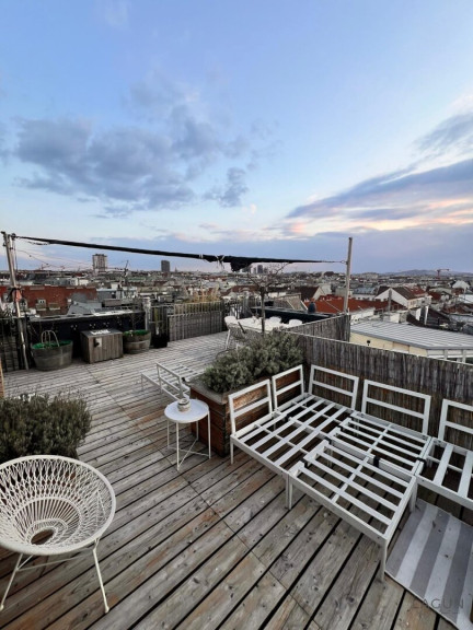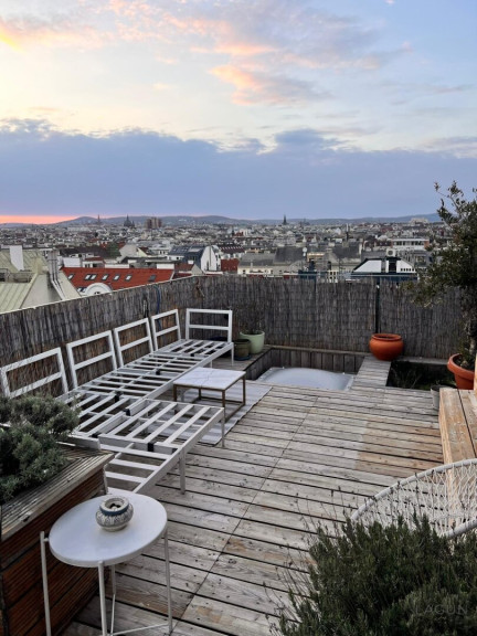 Das Dachgeschoss wurde 2013 neu auf einem um das Jahr 1900 errichteten Altbau-Zinshaus aufgebaut und bietet dadurch den Komfort eines modernen Neubaus in Kombination mit der Architektur eines klassischen Wiener Hauses.