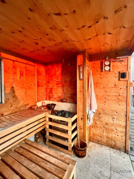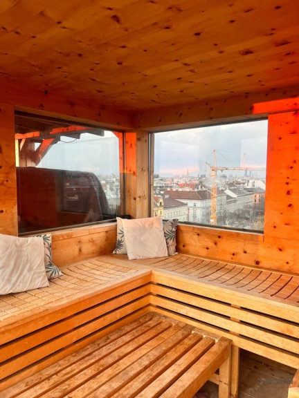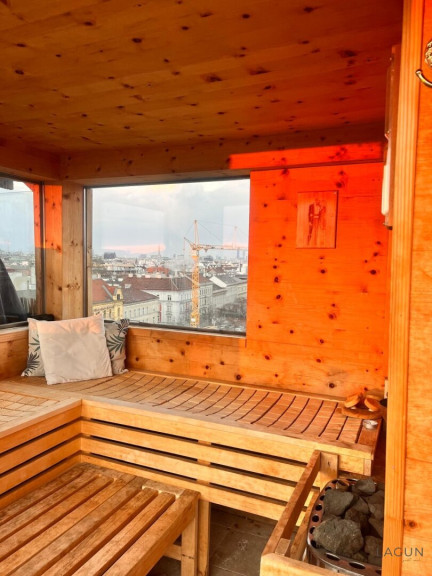 Besonders hervorzuheben ist der private Wellnessbereich auf der Dachterrasse mit Whirlpool und Zirbenholz-Sauna. Dadurch entsteht ein einzigartiger Rückzugsort über den Dächern der Stadt – ideal zum Entspannen, für gesellige Abende oder um den Blick über Wien zu genießen.