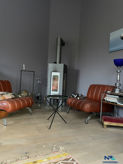 - Für behagliche Wärme sorgen nicht nur die Gasheizung, sondern auch ein stilvoller Kamin und ein zusätzlicher Ofen für feste Brennstoffe.