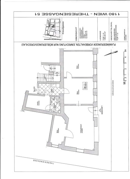 1 großer Geschäftsraum, 2 separate Zimmer, 1 Kabinett, Küche, Abstellraum, WC