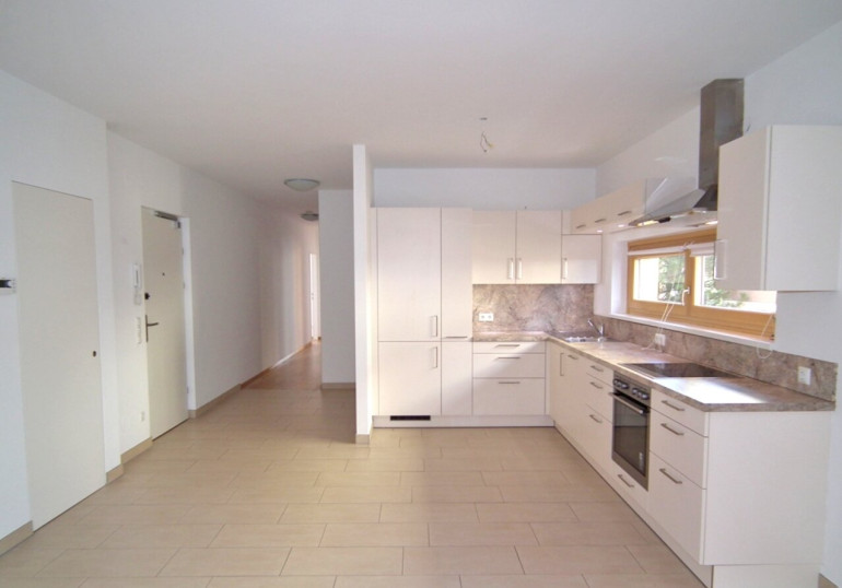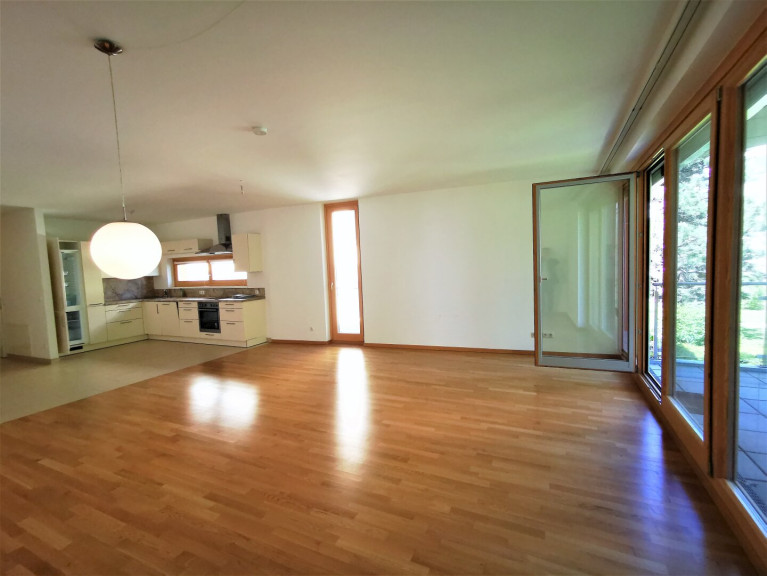 Wohnküche mit AEG Geräten; Bad mit Wanne und Dusche, Spiegelschrank, Waschmaschinenanschluss, WC; separates WC mit Handwaschbecken; Balkon mit 9,75 m² (Betonplatten) und Abstellraum; Außenrollos (elektrisch); Terrasse mit Kalksteinplatten, Gang mit Gegensprechanlage und Sicherheitstüre, alle Wohn- und Schlafräume mit Parkett, Telekabelanschluss; Die Wohnräume sind mit schönem Parkettboden, die Sanitärräume sauber verfliest.
