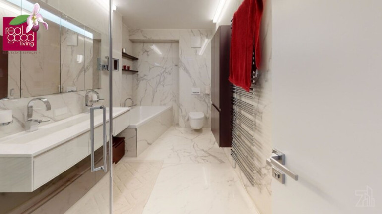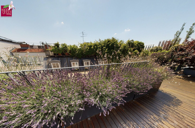 Ein absolutes Highlight ist die rund 65 m² große Dachterrasse, die als privater Rückzugsort über den Dächern Wiens konzipiert wurde. Mit stilvoller Begrünung und einem Whirlpool ausgestattet, eröffnet sie einen spektakulären Blick auf die historische Silhouette der Stadt – mit Blickrichtung zum Stephansdom. Hier entstehen Momente von besonderer Qualität: entspannte Stunden in der Sonne, elegante Abende mit Gästen oder stille Augenblicke über den Dächern der Stadt.