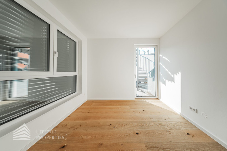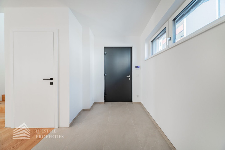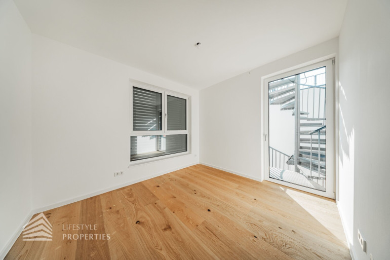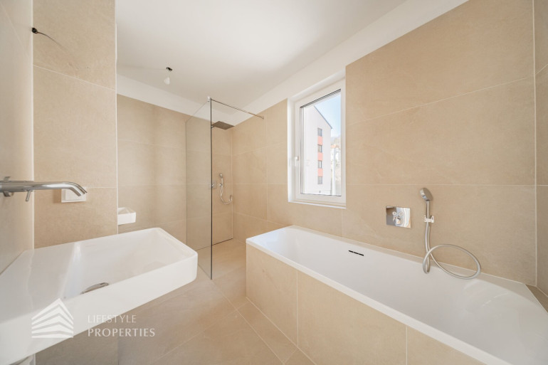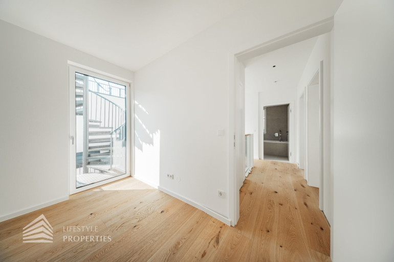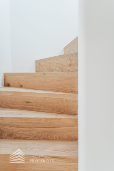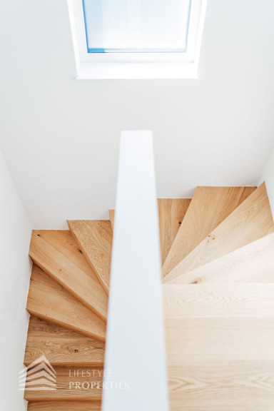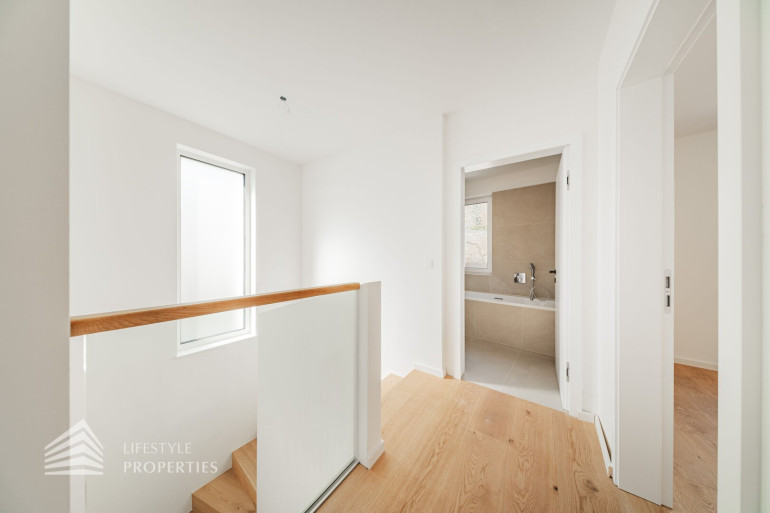 Die gesamte Haustechnik und Ausstattung wurde nach modernsten Standards umgesetzt: Fußbodenheizung mit Einzelraumregelung, die Wärmeversorgung erfolgt über eine dezentrale Luftwärmepumpe mit Pufferspeicher für jede Wohneinheit, Smart-Home-System (GIRA KNX oder gleichwertig) zur Steuerung von Licht, Raffstores und Temperatur, App-gesteuertes Alarmsystem, Videogegensprechanlage mit Smartphone-Anbindung, elektronisches Türöffnungssystem (Fingerprint, Zahlencode oder Schlüssel), hochwertiges Marken-Eichenparkett (Weitzer, Langdiele), italienisches Feinsteinzeug in den Bädern, Sanitärobjekte von Laufen Pro S, Armaturen von Hansgrohe, bodengleiche Dusche mit Echtglasabtrennung, elektrische Raffstores an allen Fenstern, Vorbereitung für Split-Klimaanlage (Außengeräte im Gartenbereich, Innengeräte im Wohnzimmer oder Stiegenaufgang (Installation nach Wunsch und gegen Aufpreis), Vorbereitung für E-Ladestation.